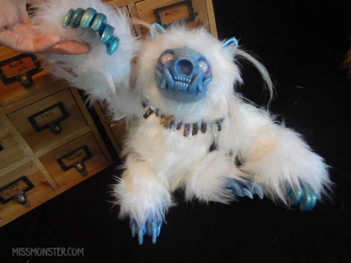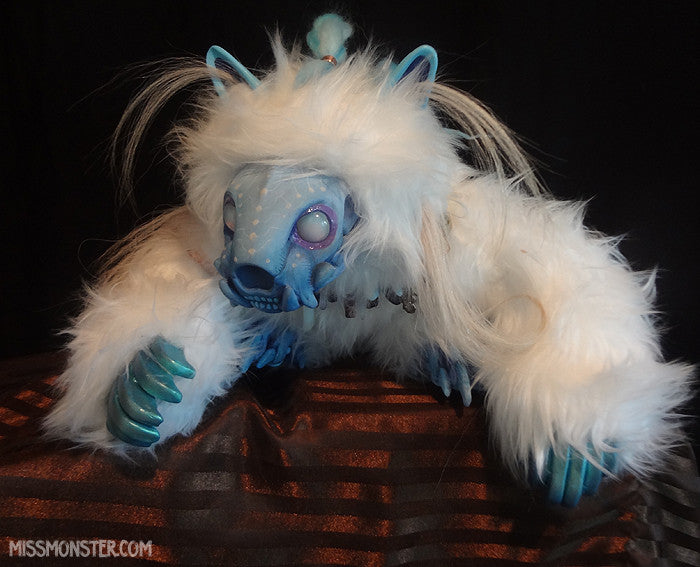 This is a handmade, one of a kind piece of art. The face , ears and claws are an original sculpt cast in urethane that is then hand painted. Each cast piece is sealed with clear coat. The body is a soft, non articulated floppy style stuffed with soft polyfill and heavy pellets to weight the butt for easy sitting. High quality thick faux fur body. Very mysterious opal glass eyeballs!