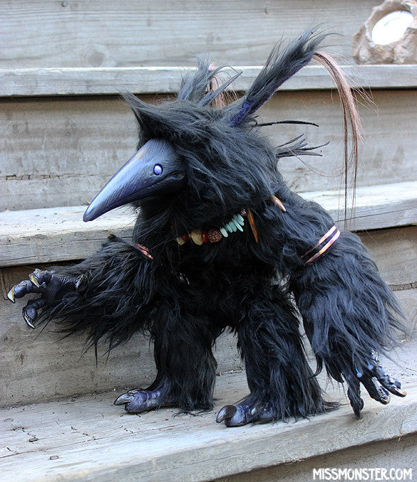 This is a handmade one of a kind doll. The head, hands and feet are cast urethane that is hand painted and sealed with clear coat. The body is stuffed faux fur with a flexible armature. He can be posed in a lot of positions!