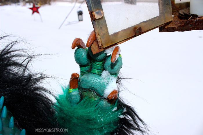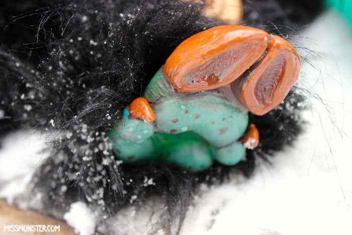This is Minglesnout the demon! He's a demon of jealousy so he loves to gossip and snark. He can be fun to be around but don't fall into his trap of making you always see the bad in people, instead use his badness to remind yourself not to be like that. Minglesnout can be an affectionate friend once he respects you. The best way to earn his respect is through his stomach... stinky fish heads and Laban gummy candies are the best for him!