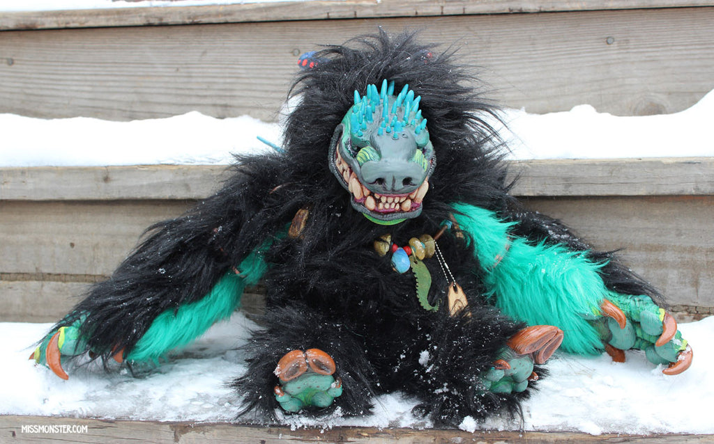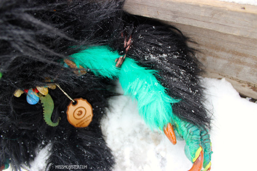 This is a one of a kind, handmade doll. His face, horns and claws/hooves are cast in urethane and hand painted. The body is soft faux fur with no articulation.