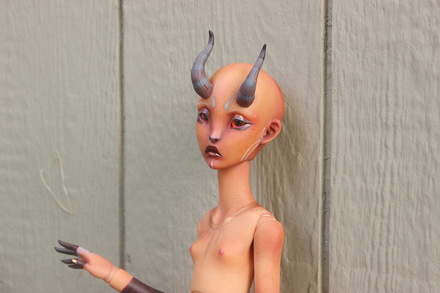 I did not sculpt this doll- this is a blank doll i purchased from Lillycat/Cerisedolls. I blushed and painted this doll. Her joints have been lined with leather pliver. She is ready to dress and display!