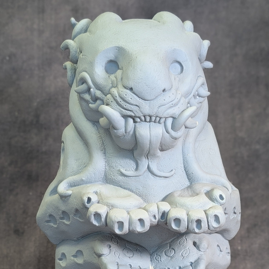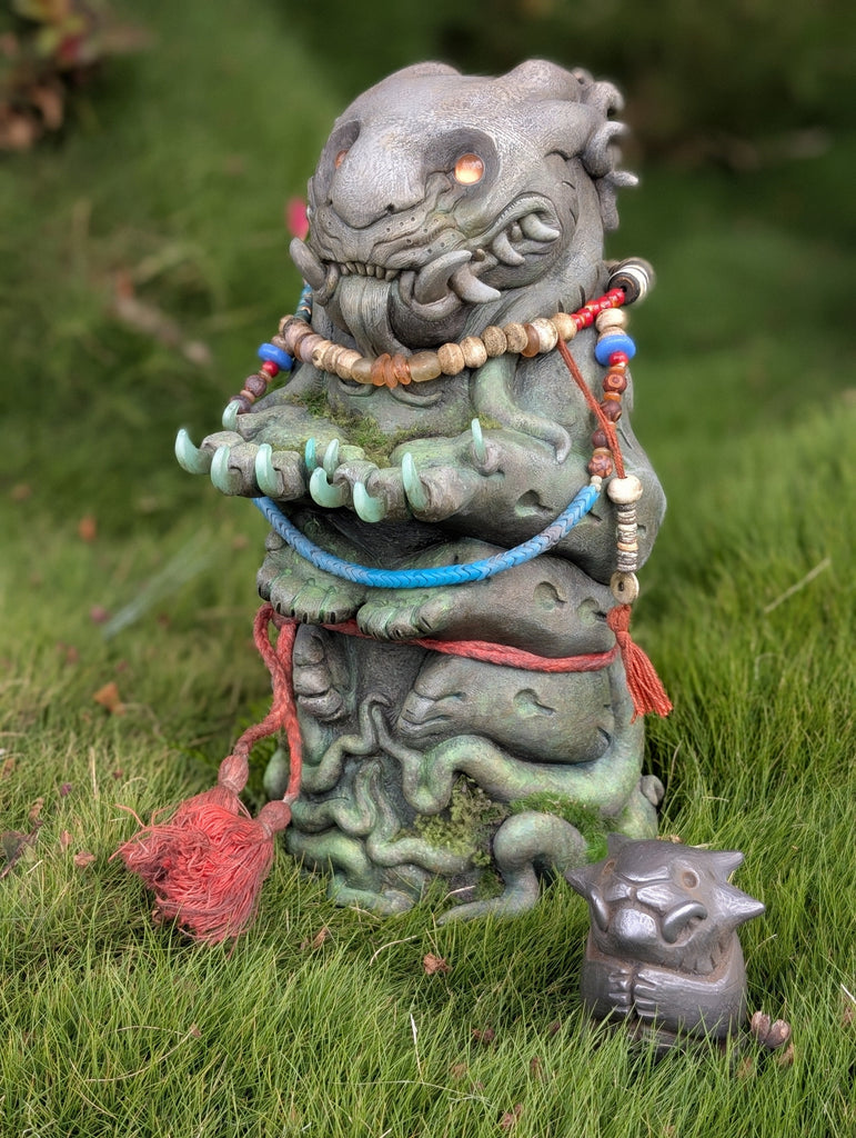 These stone carvings are found by forest paths and serve as an opportunity for travellers to petition for safety while crossing through the dense woodland. Offerings of small favored objects, morsels of indulgent food or small unusual rocks is an effective way to earn protection of this particular nature deity. Many travellers also leave small handmade effigies near these statues for others to take with them for continued luck. The custom is to replace a taken effigy with one's own carving on the next excursion through the area. There are reports of dishonest effigy "collectors" finding themselves stricken with a curse of gastrointestinal distress until the fair share is returned to the stone idol...