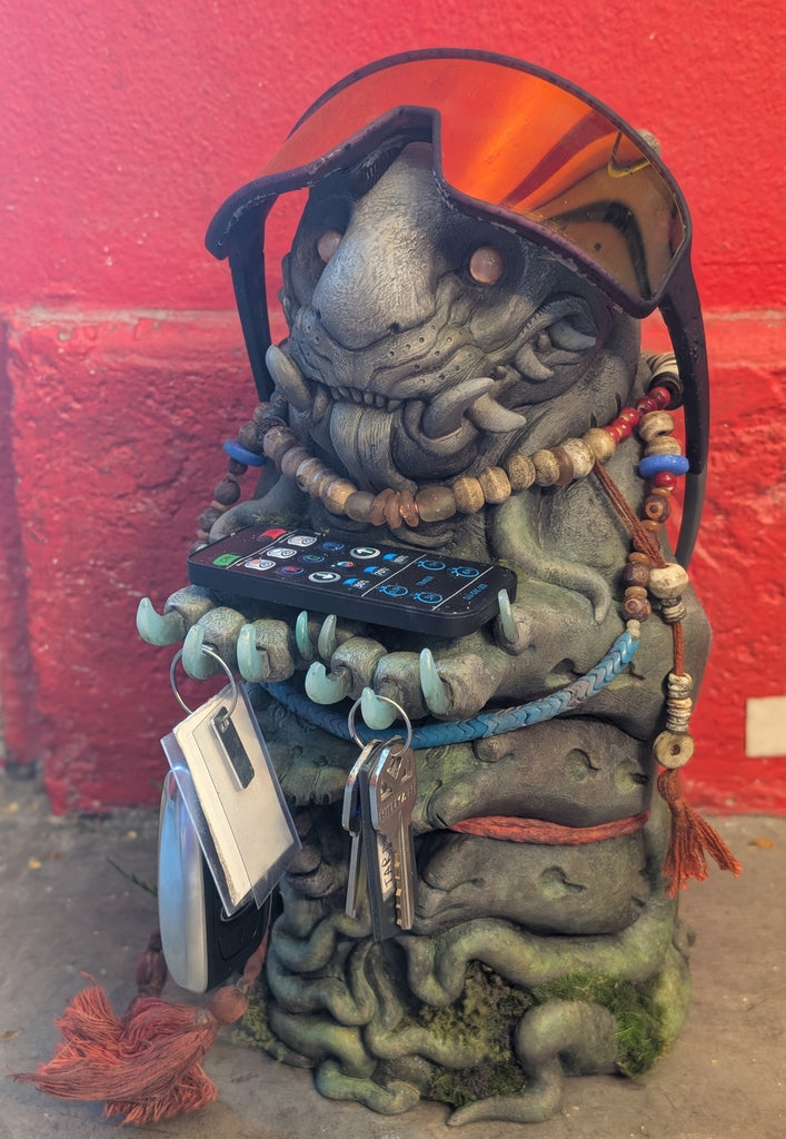 The Waypoint Watcher is a 12" urethane hollow cast. It has been sculpted to look like stone but is not actual stone.