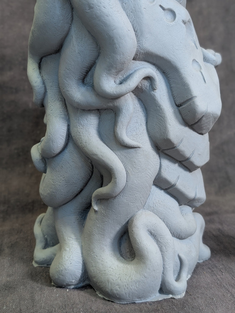This is what the cold cast effigy will look like out of the box. You will need to polish it with steel wool to bring out the metal sheen: