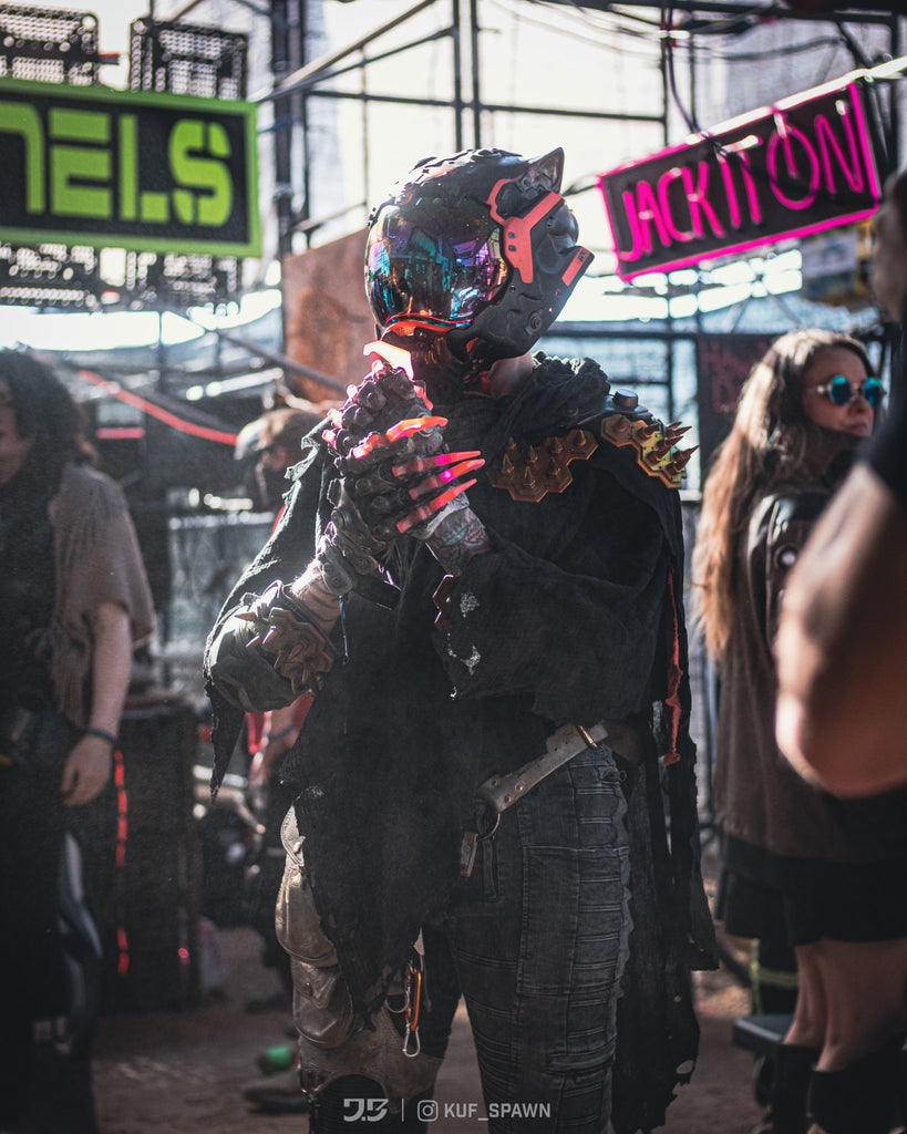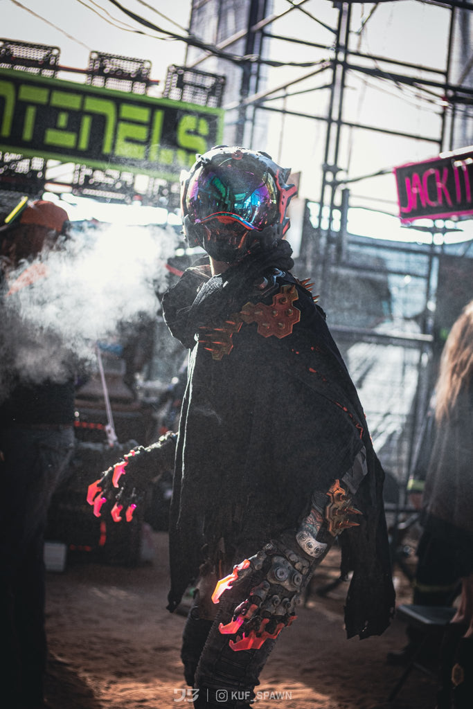 You can sew these panels onto fabric by making sew holes with an awl and using a thick curved needle with sturdy thread. I have been using Ure-Bond or Black Panther from Smooth-On to glue this onto fabrics with great results! I pin the armor on over the fabric while draped over my dummy torso with T- pins while the adhesive cures. It doesn't take other glues too well unfortunately. A hex screw + nut + punched hole may work as well!