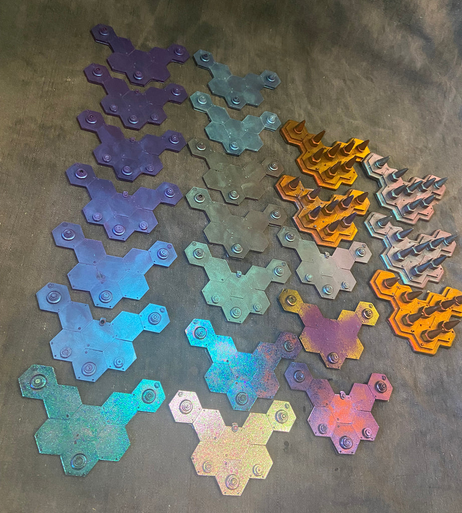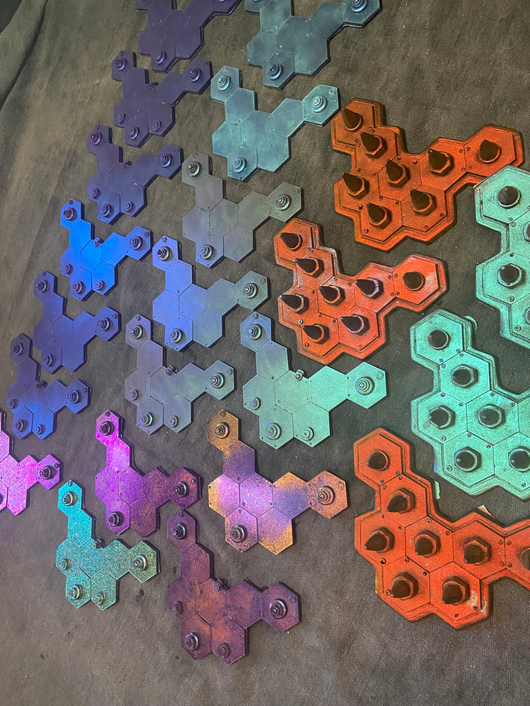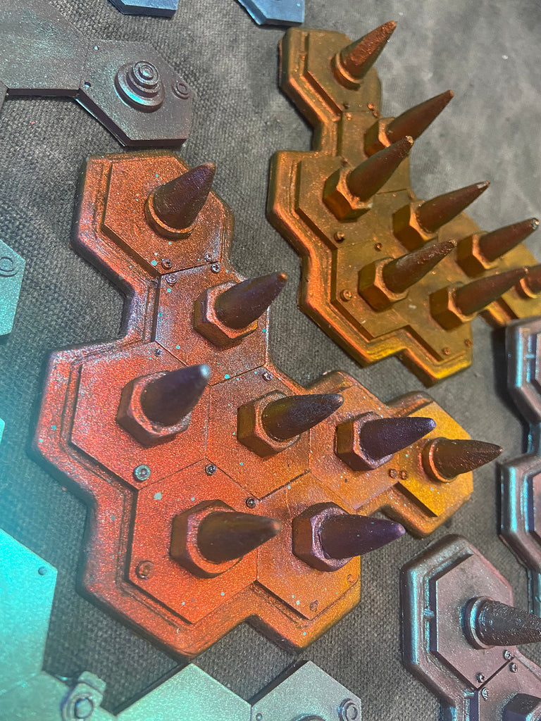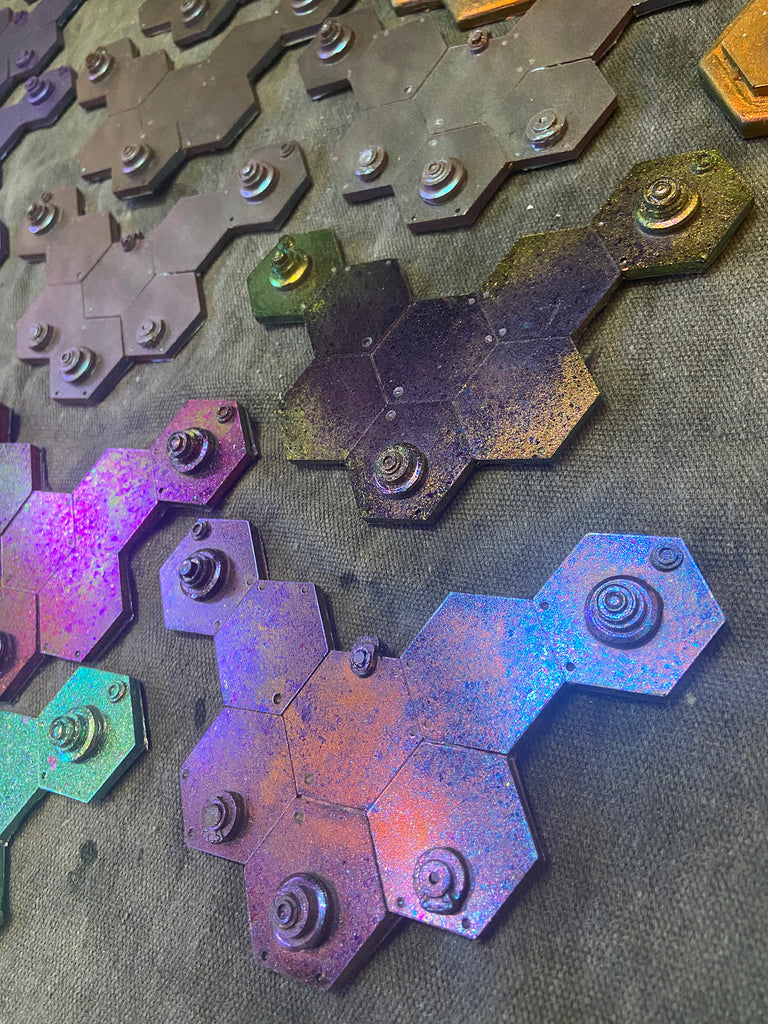 6" x 4.5" flexible resin with color shifting surface. The color shift effect is infused with the urethane and will not easily rub off. Despite this, please treat the surface with some care to extend the lifetime of the color coating.