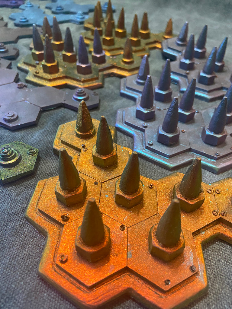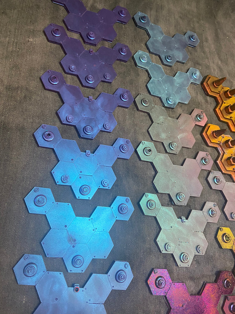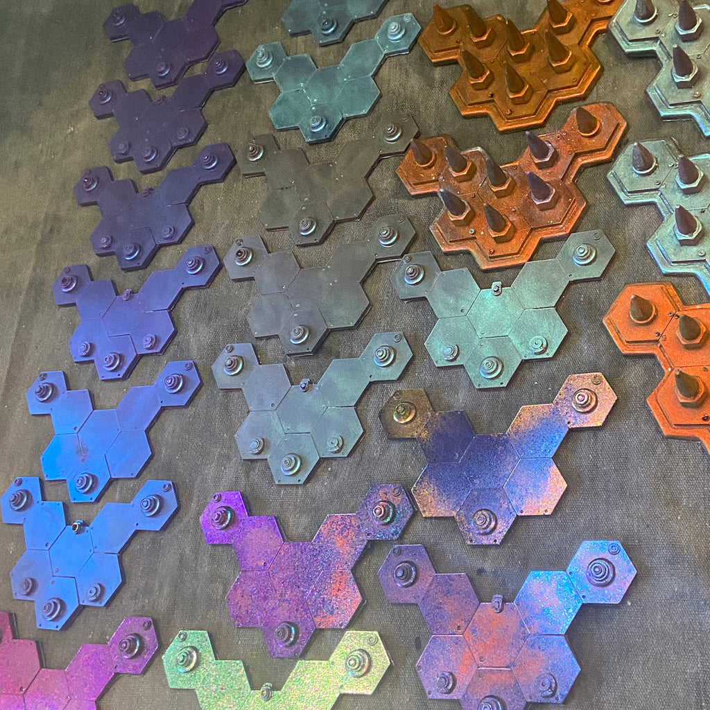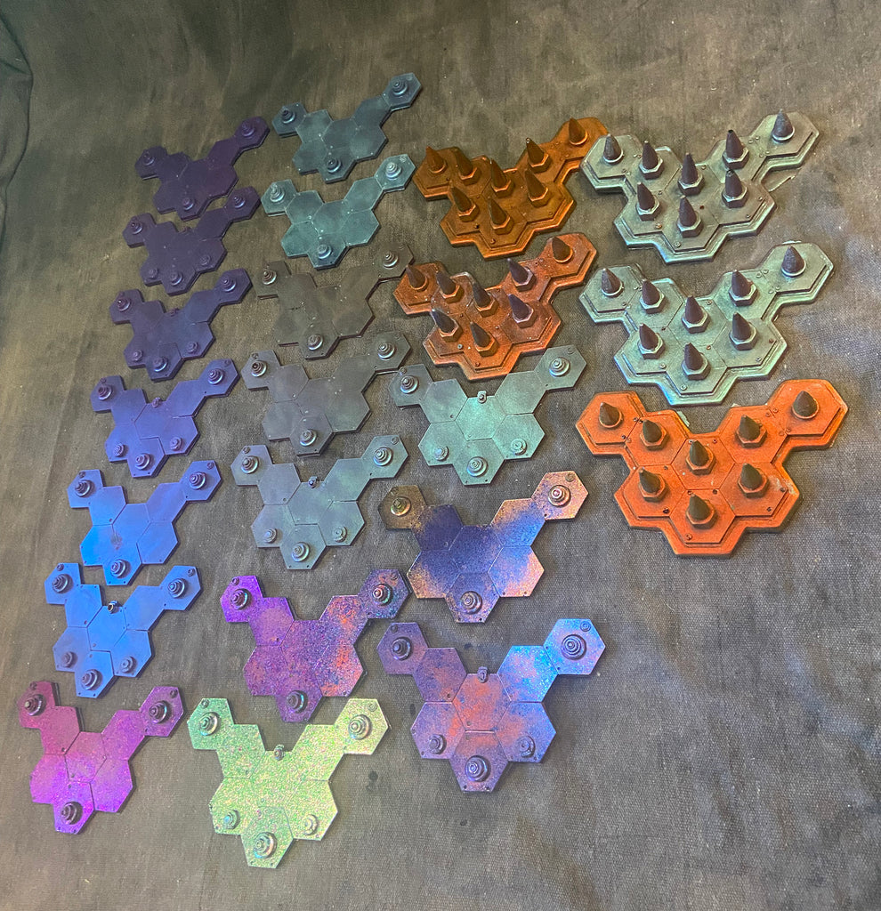 6" x 4.5" flexible resin with color shifting surface. The color shift effect is infused with the urethane and will not easily rub off. Despite this, please treat the surface with some care to extend the lifetime of the color coating.