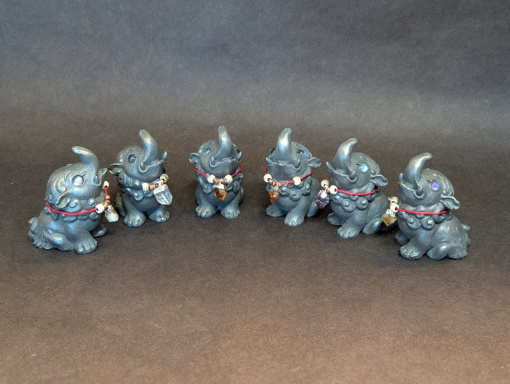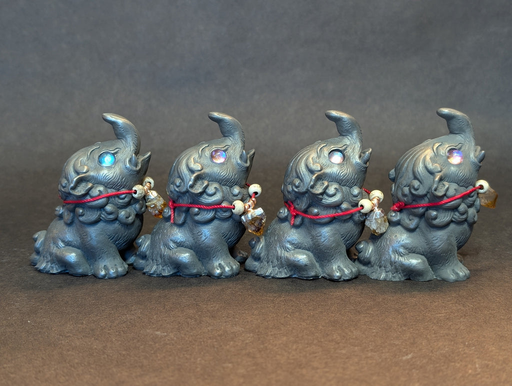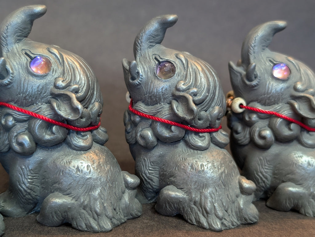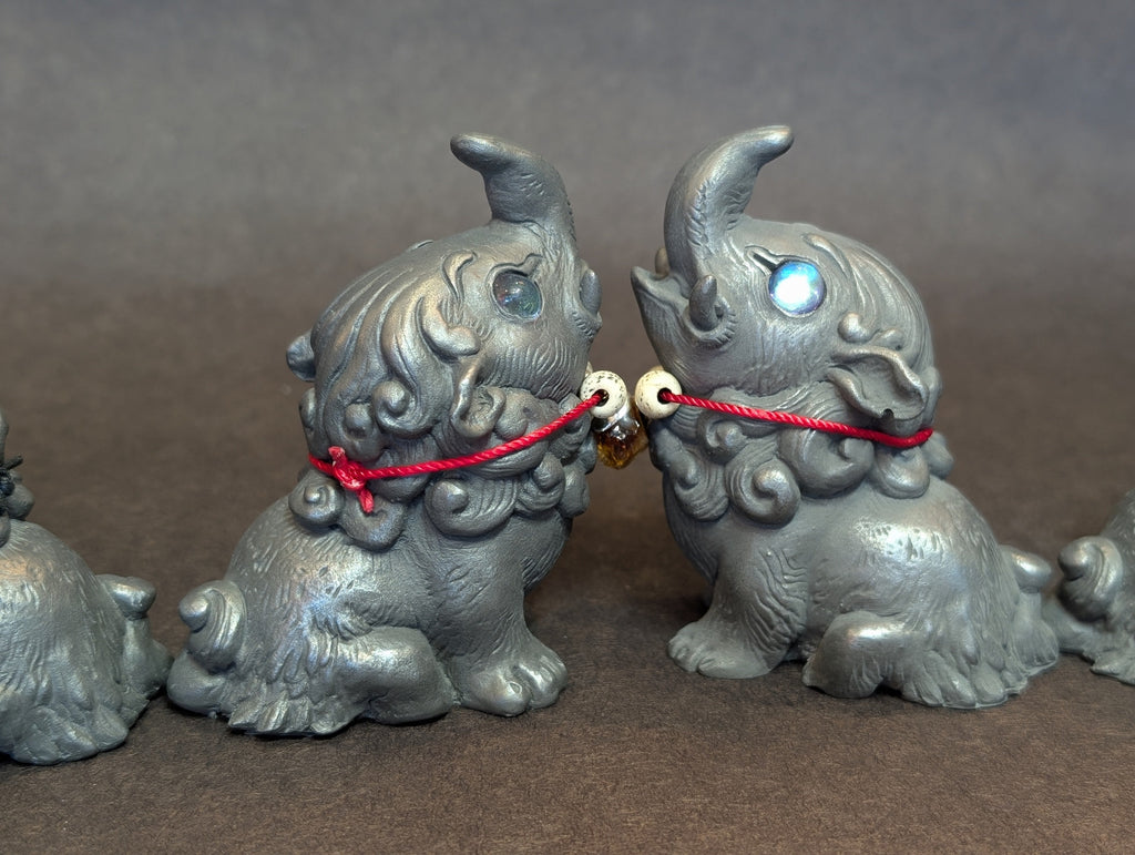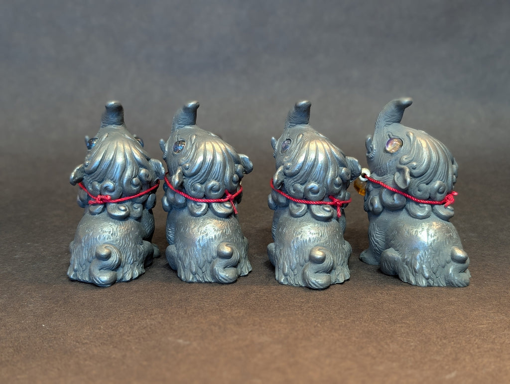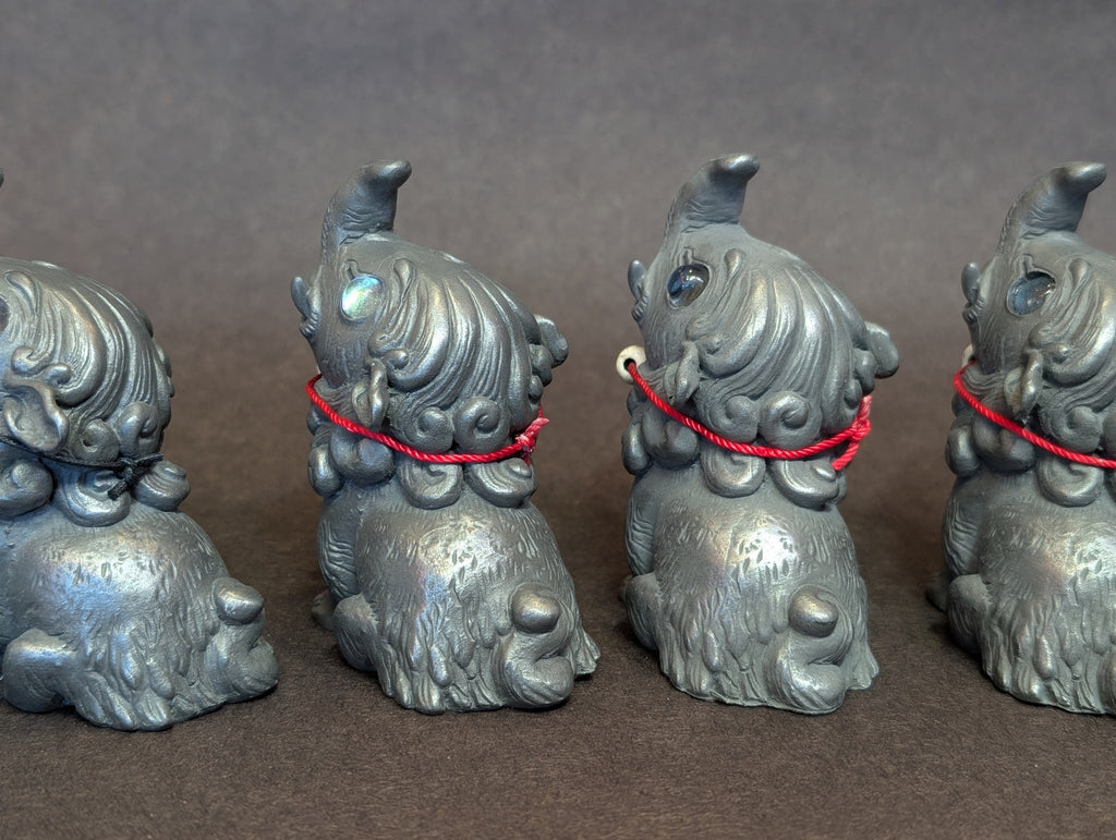 These 3.5 " finished figures were cast in cold cast iron. This is a technique of combining metal powder with urethane to create the feel and weight of a metal casting without the expense and danger of using molten metal. These can even be polished with steel wool like real metal.