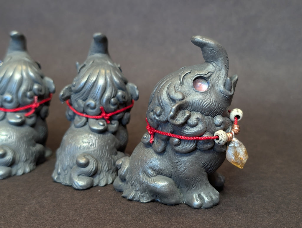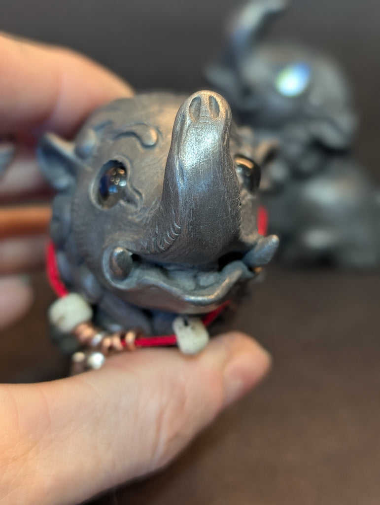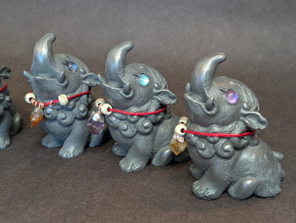 The Baku is a creature from Japanese folklore that eats nightmares! It is summoned after a nightmare by saying "Baku, devour my dream! Baku, devour my dream! Baku, devour my dream!" They are said to have the trunk of an elephant, the body of a bear and the paws of a tiger. Baku are a sacred animal, carved onto temples and painted onto folding screens to protect humans from illness and evil.
