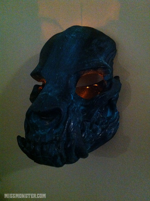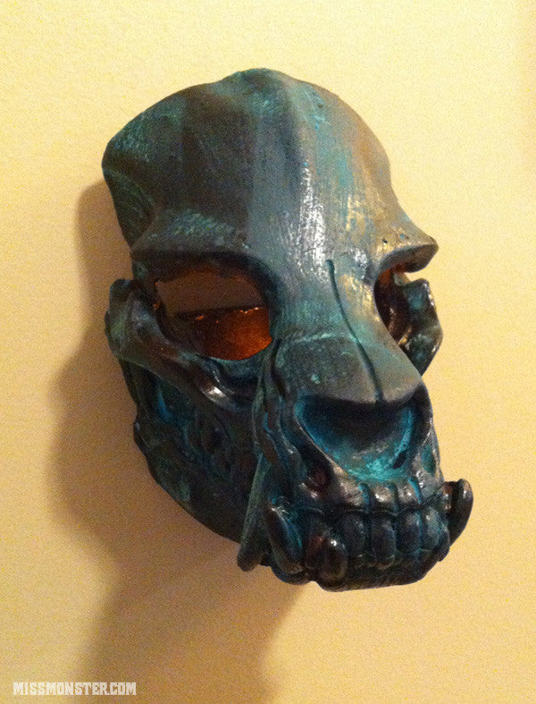 I made a few of my miscast skull masks into some cool spooky wall sconces! These are cast in urethane and painted with bronze infused paint which is then patinaed with acid. Each sconce is clear coated in gloss and ready to hang.